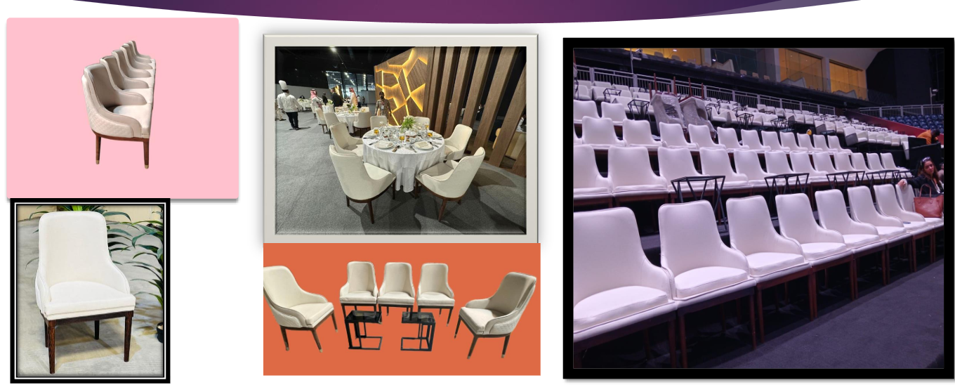 banquet chairs and modern seating for gatherings of any size. We provide chair rental services in Riyadh for weddings, conferences, and private events.